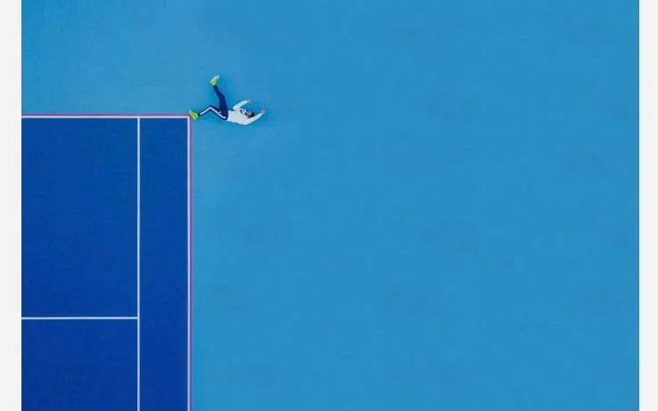 Primo Premio per lo scatto sportivo va a questa immagine a bordo campo scattata da un punto di vista inedito, esattamente il punto di forza dei droni.